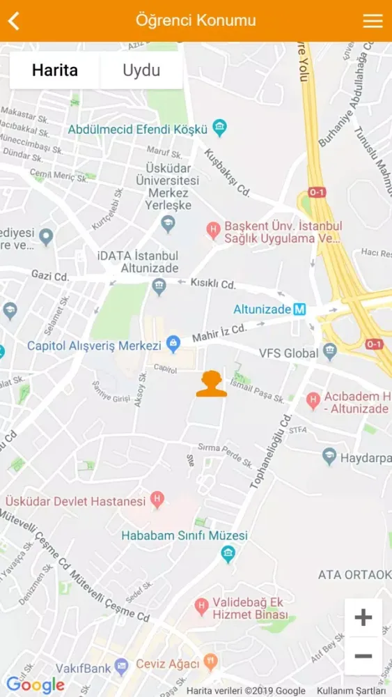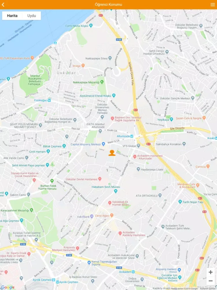 Yolcunun haritada konumu, navigasyon ile erişimi, iletişim bilgileri
