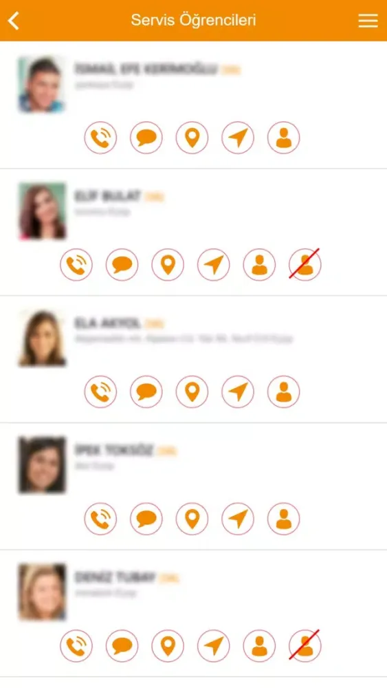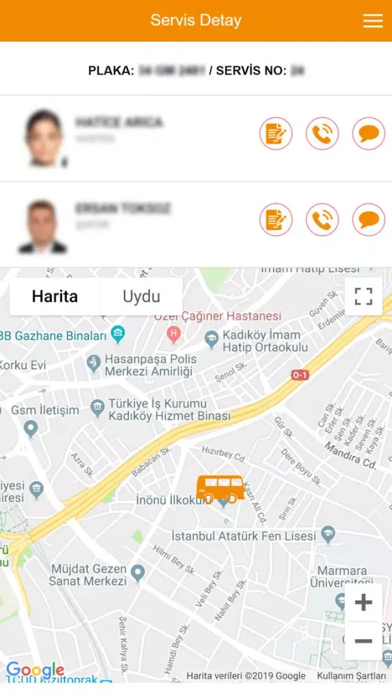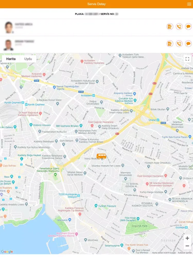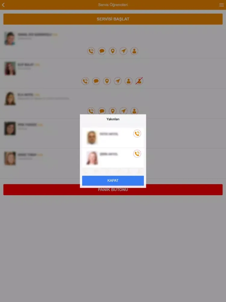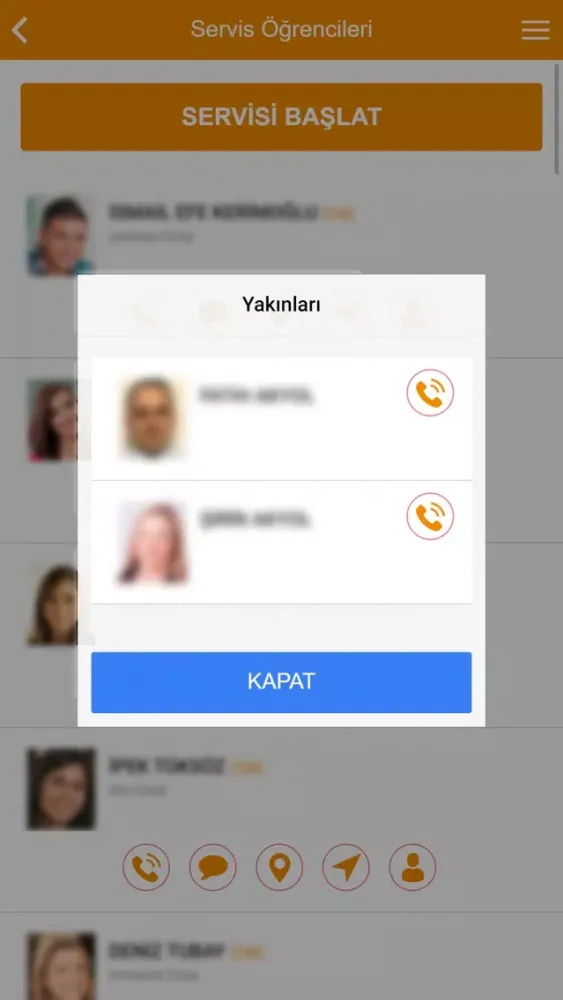 Servis personel bilgileri, telefonla erişim, mesaj gönderme