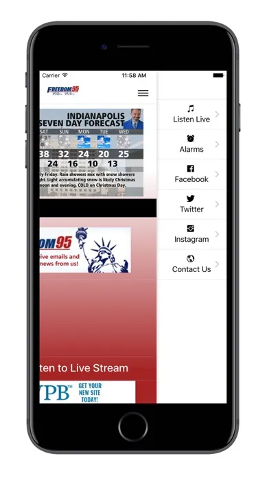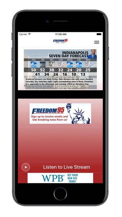 Freedom 95 - 95.9 FM and 950 AM - is a conservative talk radio in Central Indiana that hosts popular nationally-syndicated talk shows like Sean Hannity, Dave Ramsey, Laura Ingraham, Michael Savage, Mark Levin and more... Listen live with our FREE app anywhere from your mobile phone or tablet, hear podcasts, and get daily news feeds. The FREE app features advertising information and a signup form to receive station news and chances to win prizes. Support the radio station and the businesses that advertise on the station that bring you the hosts you love.