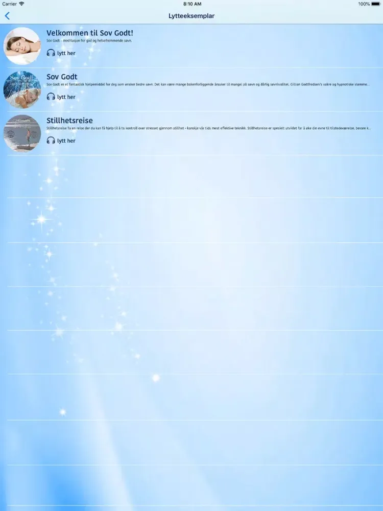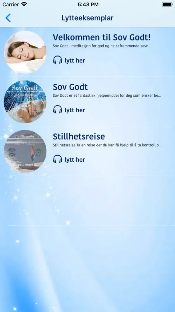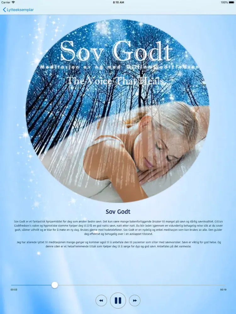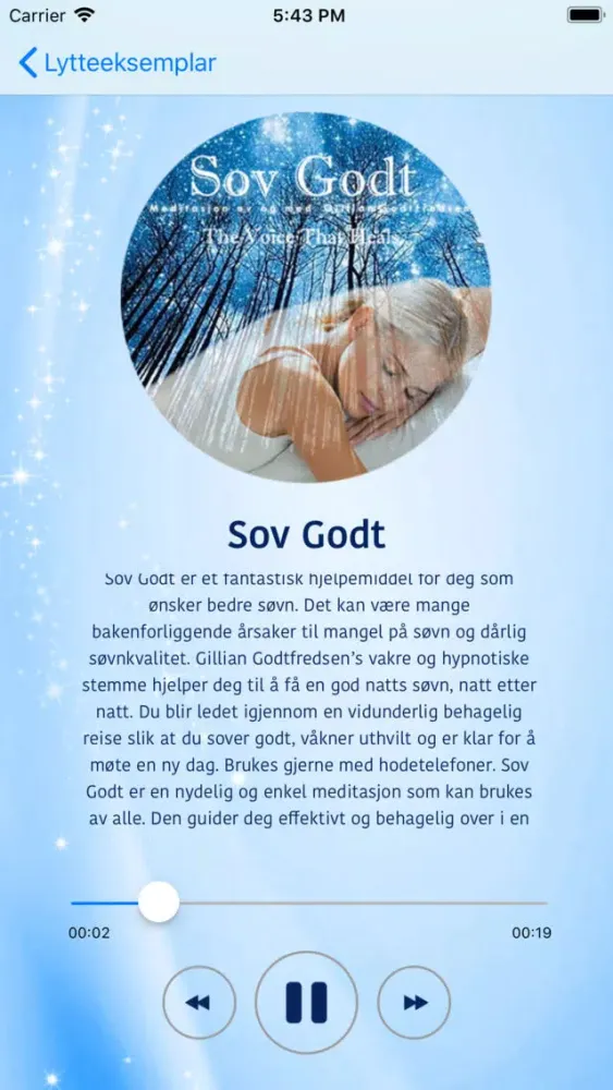 Appen inneholder guidede meditasjoner som hjelper deg til å slappe helt av og glir inn en god nattsøvn kveld etter kveld.