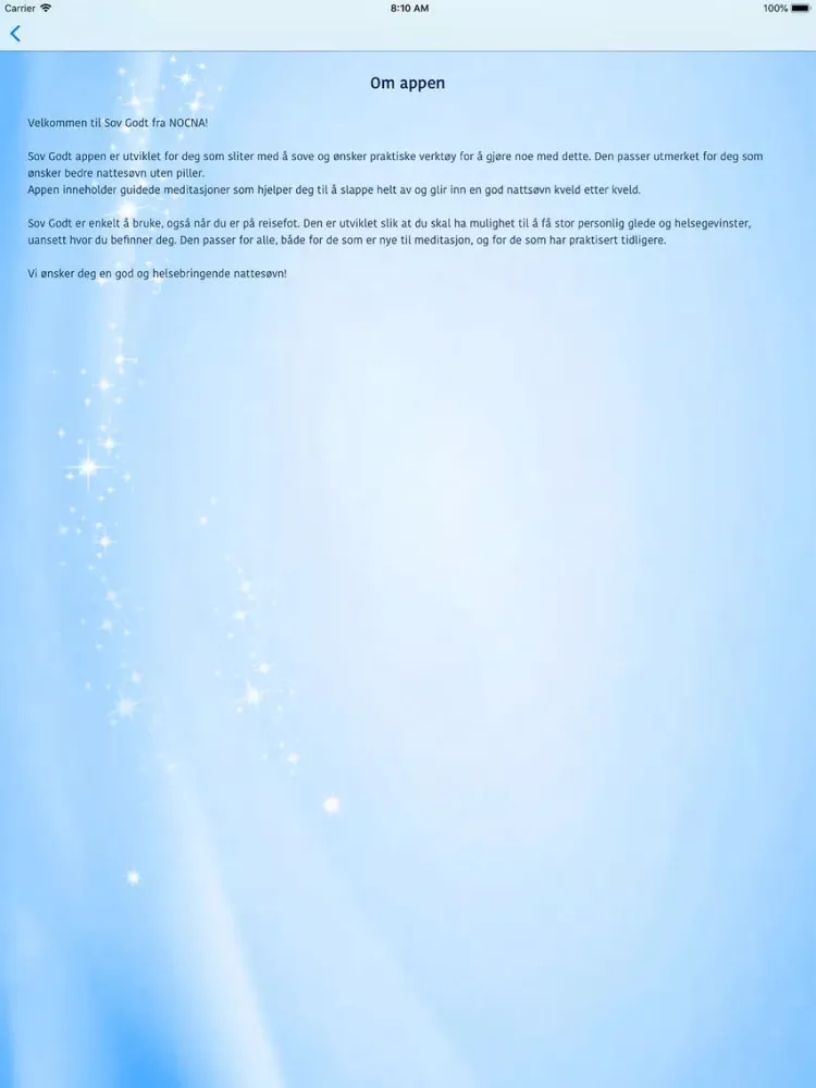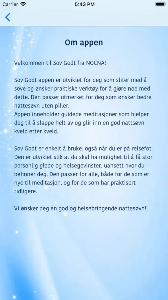 Sov Godt appen er utviklet for deg som sliter med å sove og ønsker praktiske verktøy for å gjøre noe med dette. Den passer utmerket for deg som ønsker bedre nattesøvn uten piller.