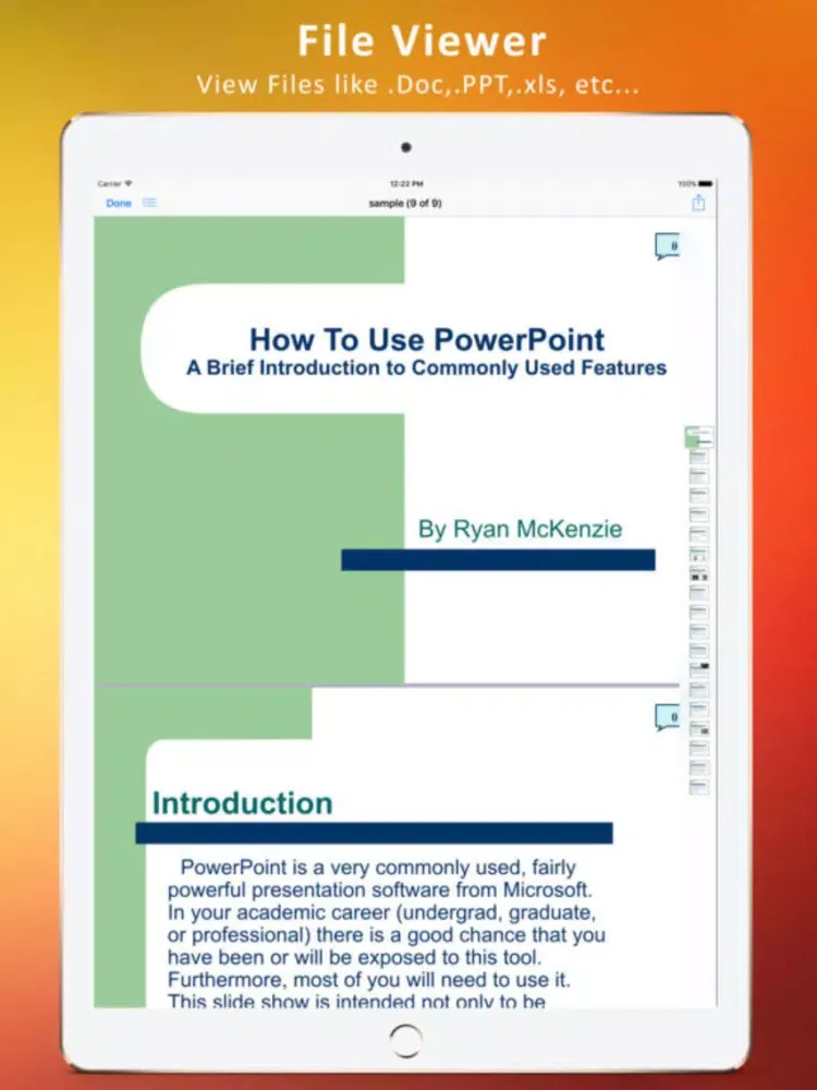 Make PDFs from anything you have on the iPad. Save Word, Excel, Powerpoint or iWork documents, web pages, photos and even clipboard content as professional quality PDFs.