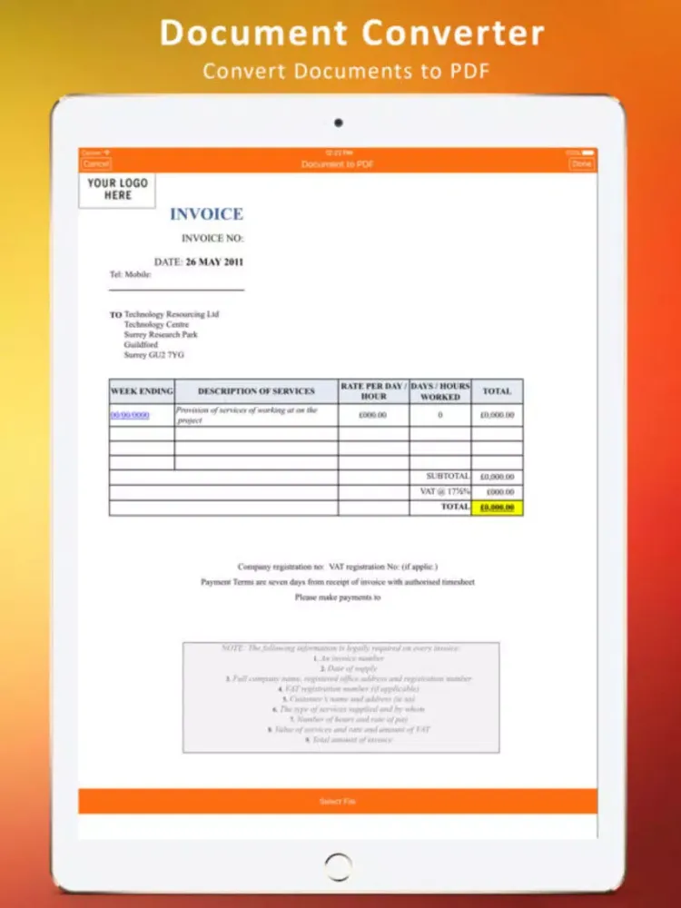 The process is 100% secure since conversion is done locally on the iPad. Your documents never leave it and it does not require internet connection.