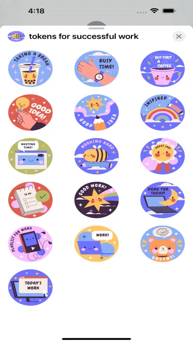 Celebrate success and achievement in style with our "Tokens for Successful Work" sticker pack for iMessage! Elevate your messages with a collection of motivational and rewarding stickers. From gold stars to thumbs up, this pack is a visual pat on the back for a job well done. Recognize accomplishments, express encouragement, or simply add a touch of positivity to your work-related conversations.