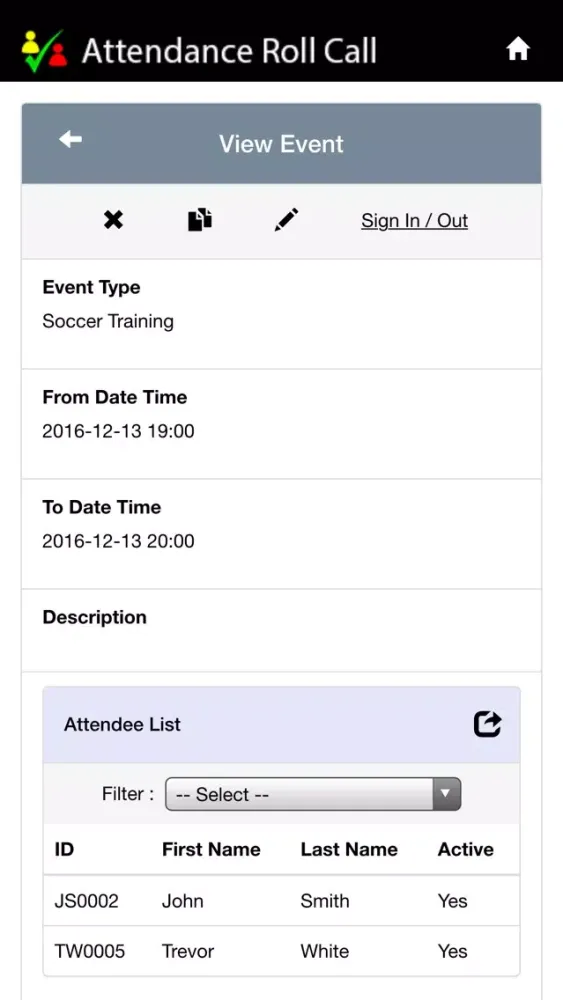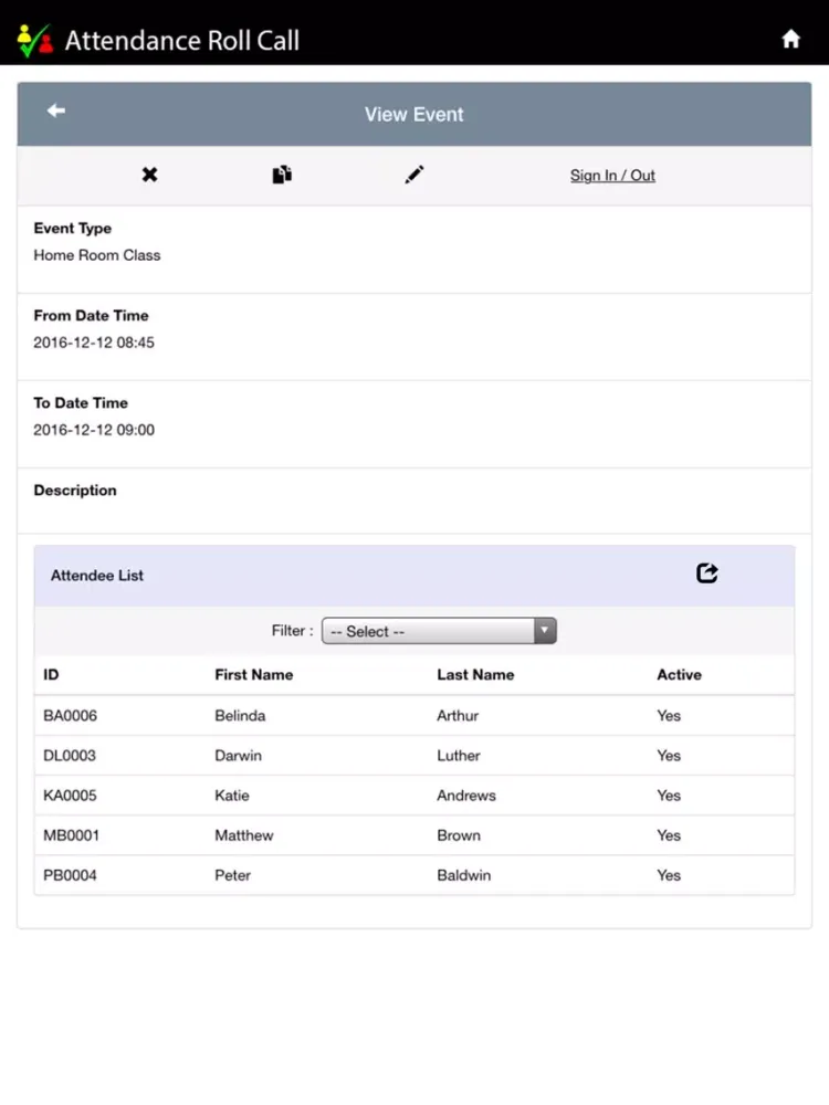 Attendance Roll Call mobile application is a simple and convenient way of tracking attendance. It is a great tool for teachers and trainers to keep a record of their students' class attendance and for event organizers in general to keep track of participants' attendance.