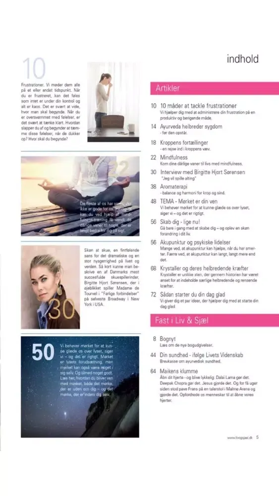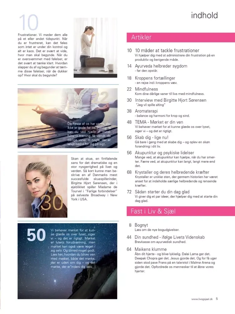 Magasinet Liv & Sjæl skriver om personlig udvikling, alternativ behandling, spiritualitet og sundhed. I hver udgave bringer vi artikler, der inspirer til et lykkeligere, sundere og mere harmonisk liv.