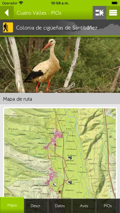 En ella se presentan un total de 44 PIOs, Puntos de Interés Ornitológico, repartidos por las siete comarcas de Cuatro Valles. Cada uno de ellos cuenta, además, con una señal instalada sobre el terreno en la que aparece un código QR a través del que se acceder· directamente a un PIO concreto. En cada PIO se destacan los distintos h·bitats de interés para las aves (montaña, bosques, pastizales, matorrales, riberas y ríos, lagunas, embalses, zonas de manejo agrario tradicional, pueblos...), sus singularidades, sus usos tradicionales y, en especial, las aves que con mayor probabilidad se podr·n encontrar en ellos. De forma complementaria se indican también algunas especies más raras o menos frecuentes que, aunque más difíciles de ver, resultan singulares en el territorio.
