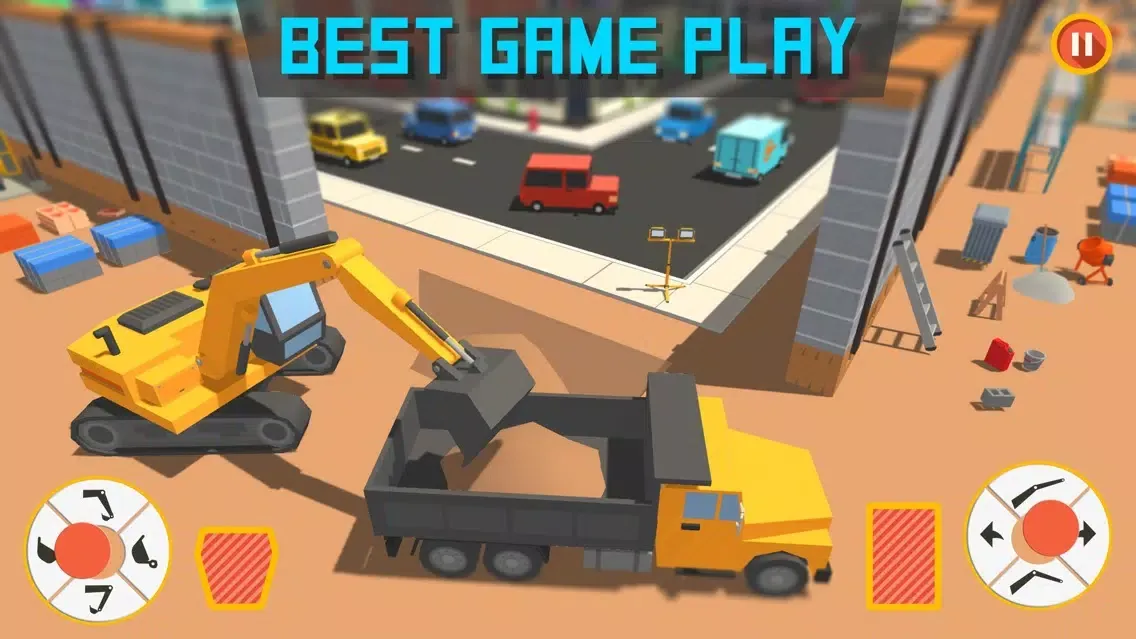 In the first level of the City Builder 2017 Border Wall Construction Games you have to place the wall parts on marked area. You have to fill the hole with sand with the help of excavator and then put the two parts of it at the right place with the help of crane. Marked area is not plain. You have to flat the marked surface with the help of roller and then use 3 parts of wall with the help of crane in this city builder 2017. If player tries to put any part of it on unequal surface, that part fell down and also notify player to “First flatten the surface”. Then you have to remove the extra material from marked area with the help of loader and then place 3 parts of wall at the same place. Destroy old pillars and load all dirt onto the truck. You have to throw the mix concrete in the hole, flatten that area with the help of roller and then use those wall parts there and so on.