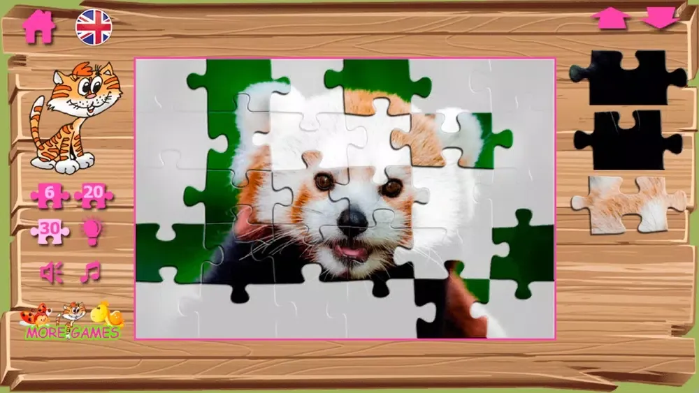 There are several levels of complexity: on 6 pieces, on 20 pieces, and the most difficult level - puzzles without hint. Therefore, it is puzzles which it is possible to play all family.