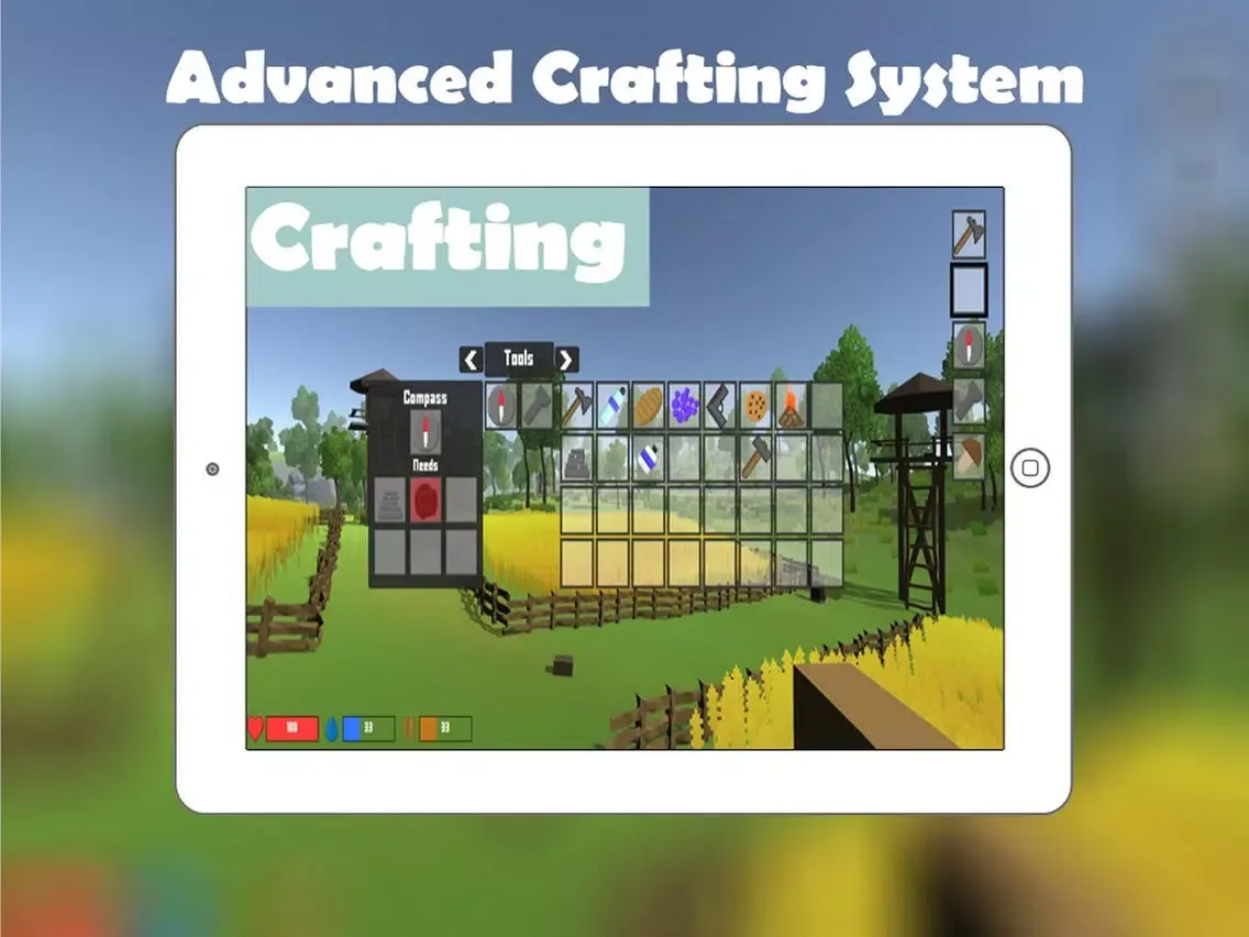 Infinite the forest, weapons, achievement, real day/night cycle, advanced crafting and inventory system, water, foods, compass and many more tools. It does so while maintaining its own realistic, survival-themed style. Start with basic requirement, craft, hunt, research and fight to survive.