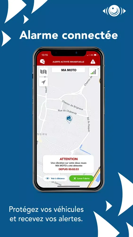 En cas de vol le traquer sera automatiquement activé pour géolocaliser votre moto en temps réel.