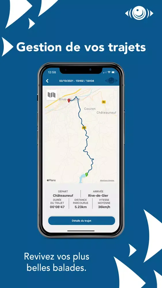 De visualiser vos trajets (position sur la carte / degré d’inclinaison de la moto …)