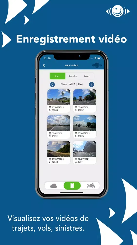 Après installation du produit sur votre deux-roues, les caméras filment vos trajets, votre Sentinelle transfère vos vidéos en continu sur votre application !