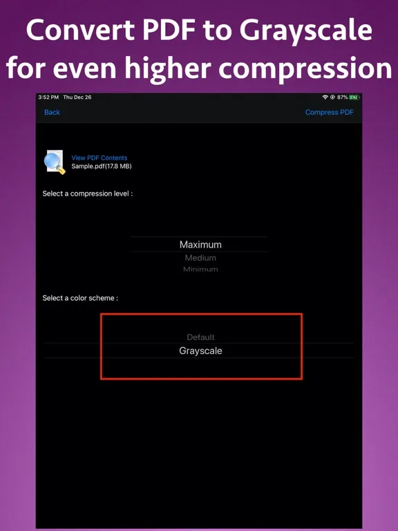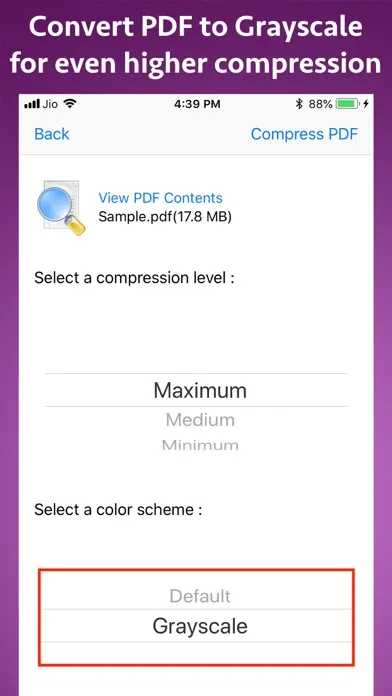 The PDF could also be converted to Grayscale along with the compression. Changing the colour of images and contents of the PDF to grayscale helps in further reducing the file size of the PDF.