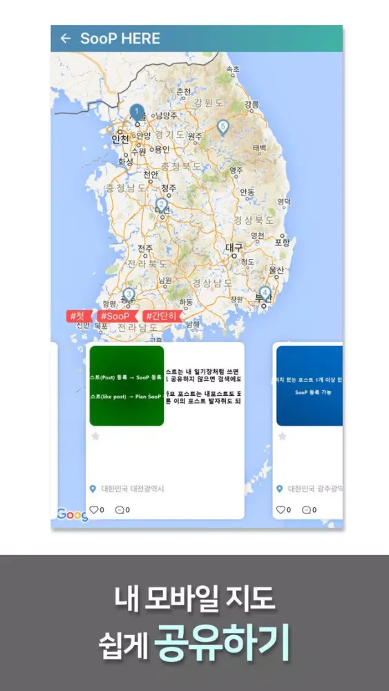 SooP은 개인의 지도를 모바일에서 쉽게 만들고 공유하는 소셜 네트워크 플랫폼입니다.
