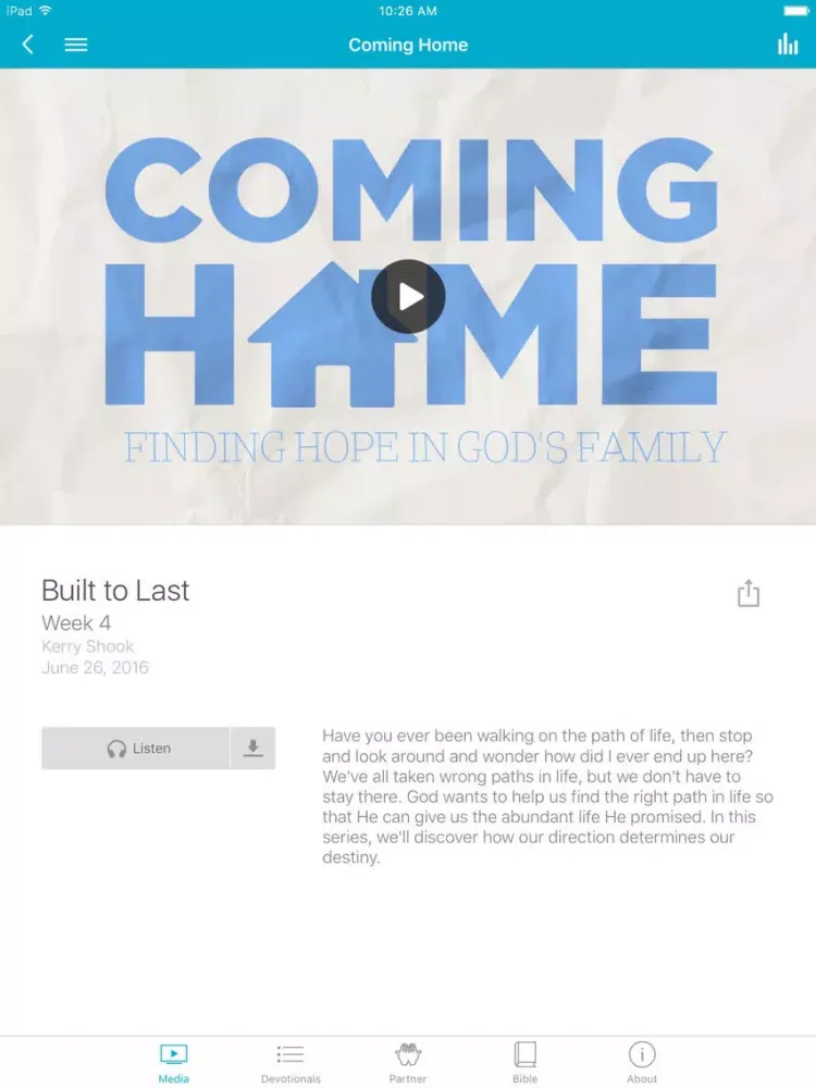 Through this app, you can listen to the latest Kerry Shook content straight from your mobile device. The Kerry Shook app is an extension of the broadcast that provides you with video messages, podcasts and additional resources to help you with your spiritual walk.