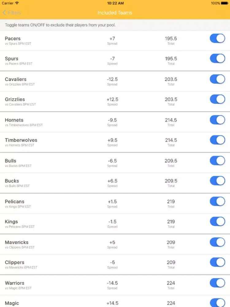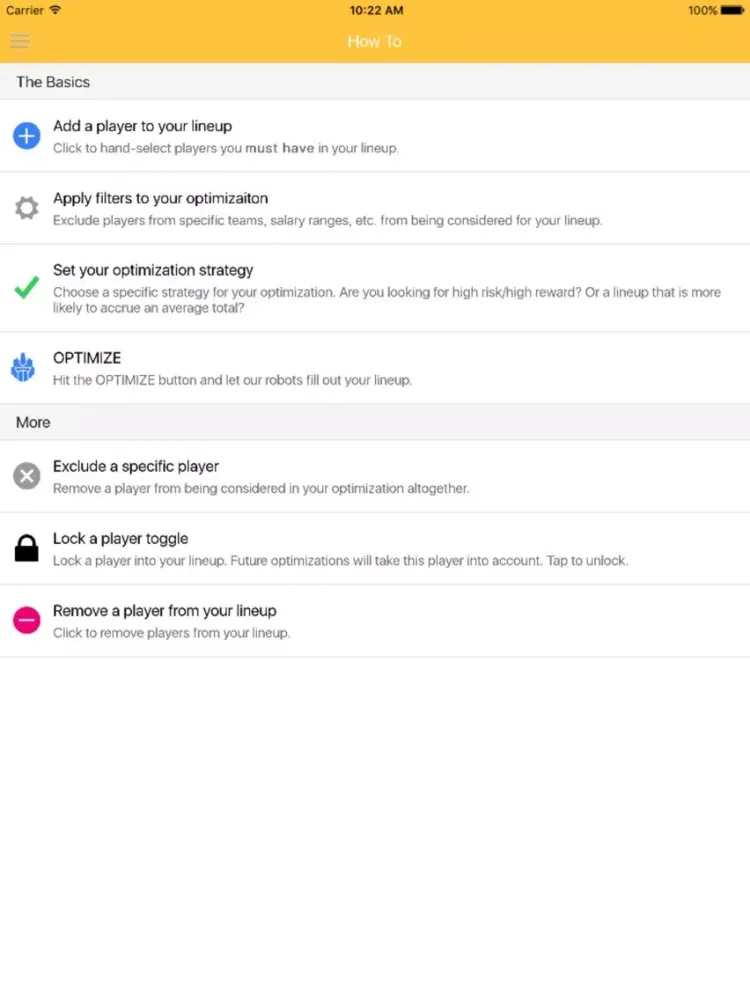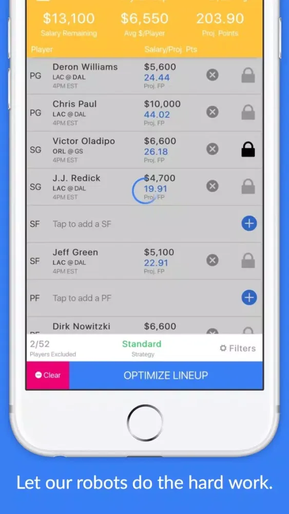 Screenshot di OPTIMUS Daily Fantasy Lineup Optimizer iPad