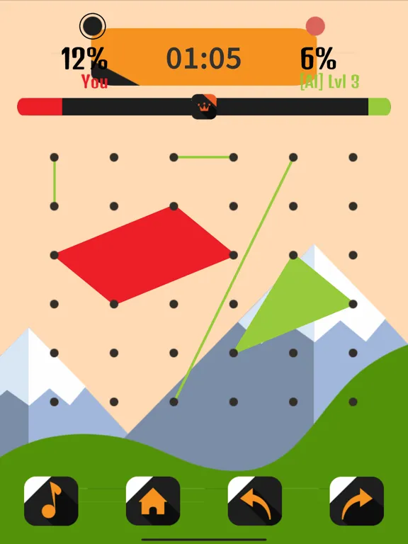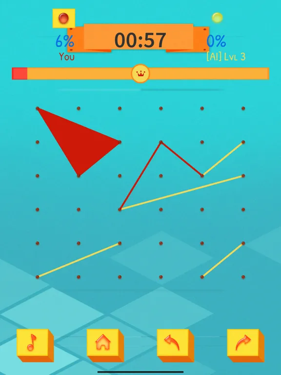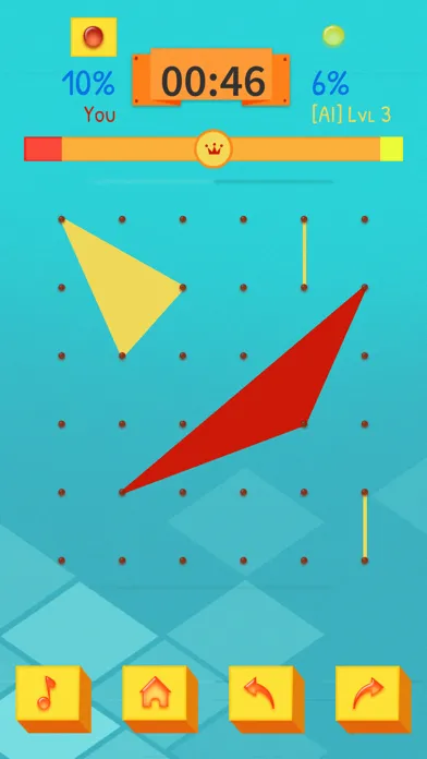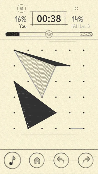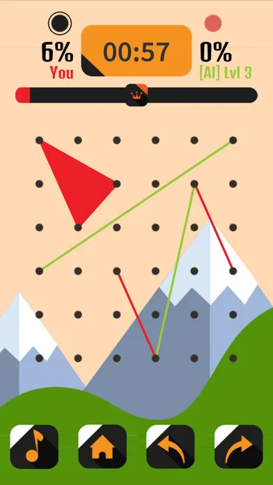 Connect the dots and create triangles! First to cover more than 50% of the game area with his color wins!