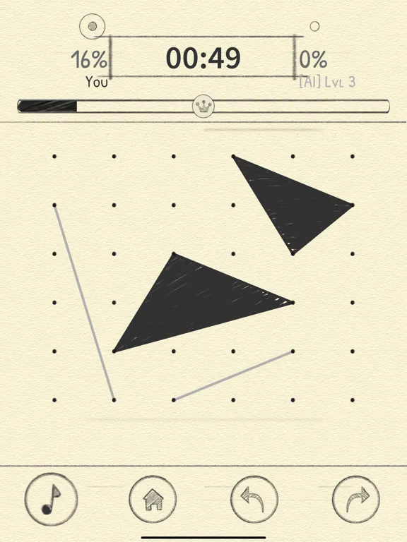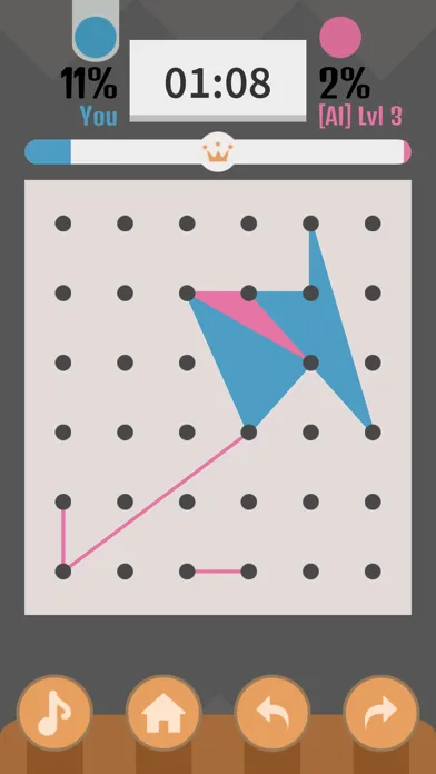 Dots & Triangle is a minimal puzzle game as it is very simple : just link dots with lines so that by connecting dots you form triangles and cover as much area as possible.