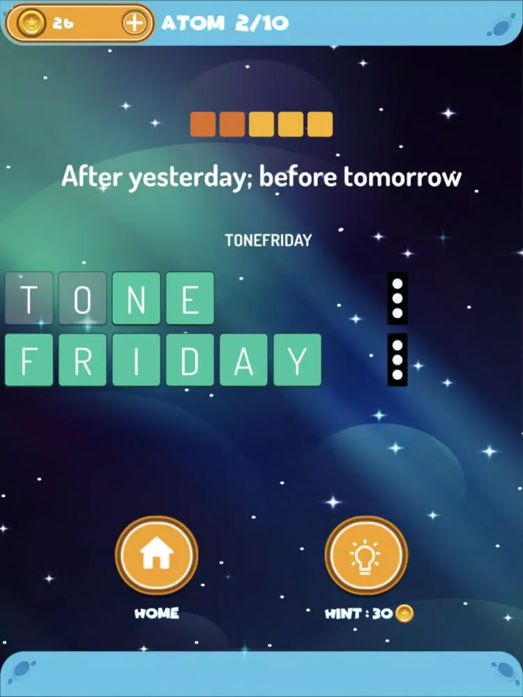 - Eliminate required number of letter tiles from a set of words to reveal the answer