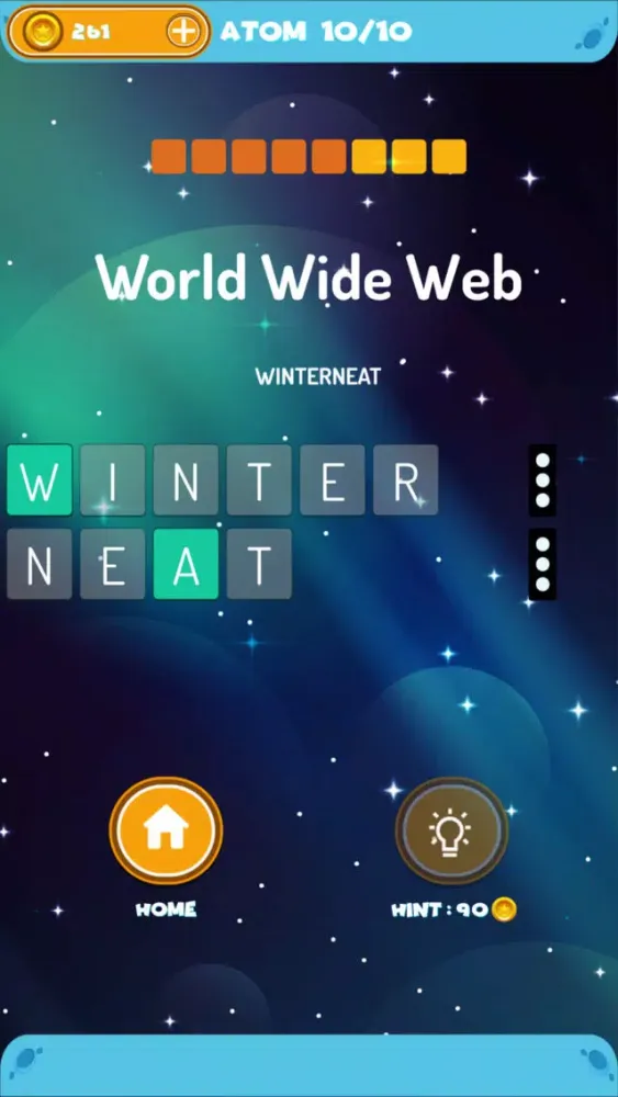 Introducing 'Word Mine', a set of brain teasers designed for all age groups. The goal of the game is to reveal the hidden answer by eliminating letter tiles from 2 to 3 words. As the levels progresses, the sequence of the knocked-off words should be rearranged to reveal the answer.