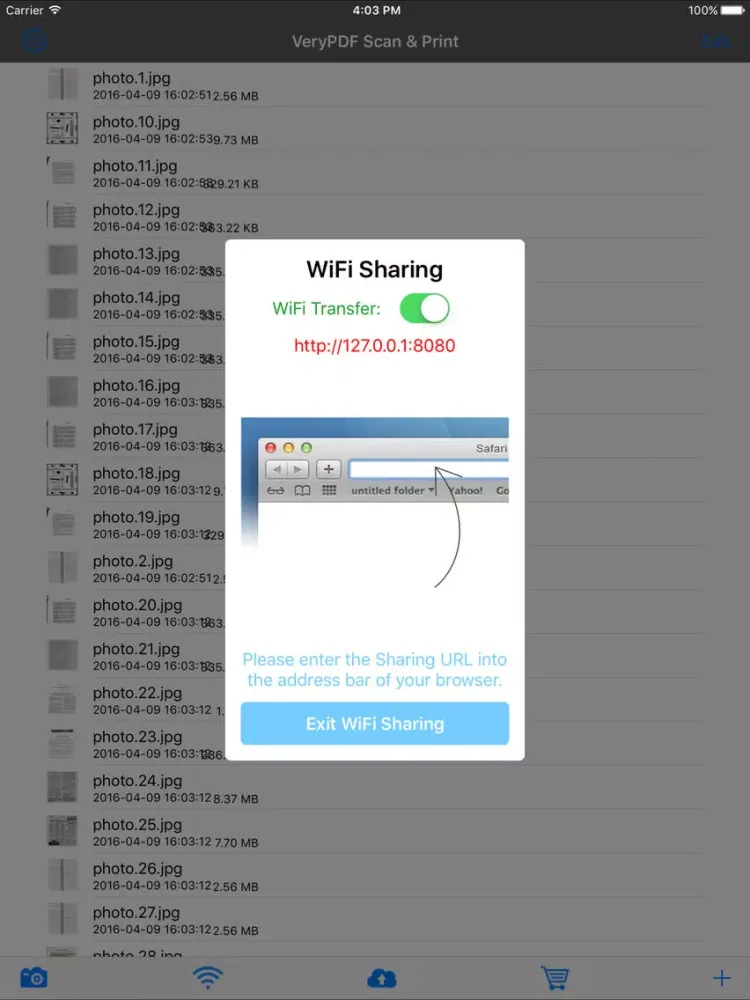 - Shares document over Wifi for easy access from your computer