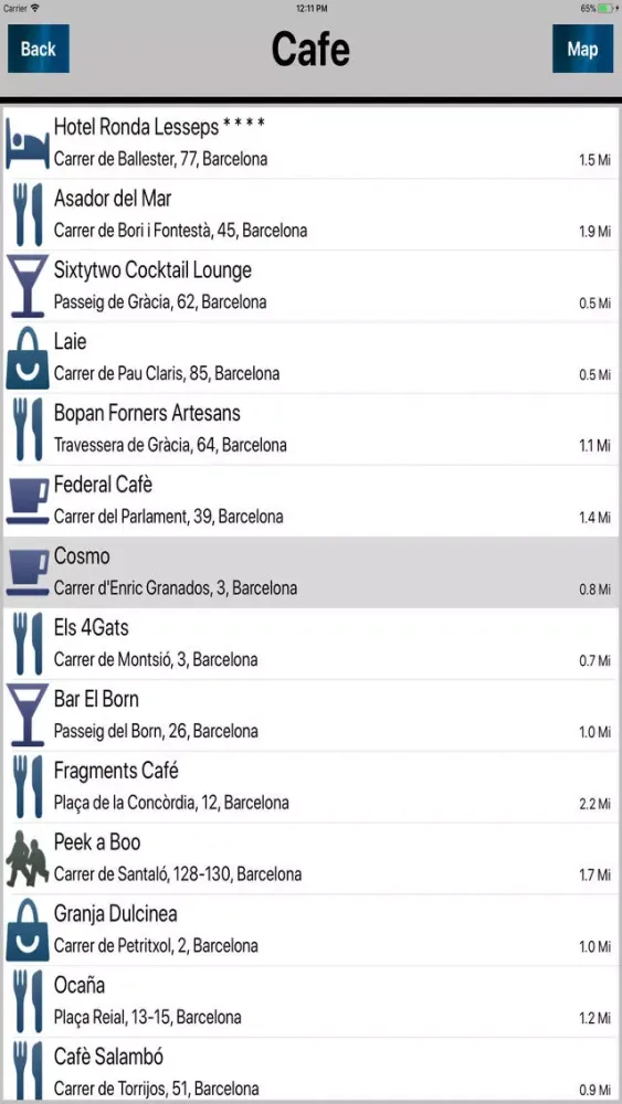 - Search for Restaurant / Bar / Night club / Lodging / Hotel / Museum / Pharmacy / ATM / Bank / Gas station