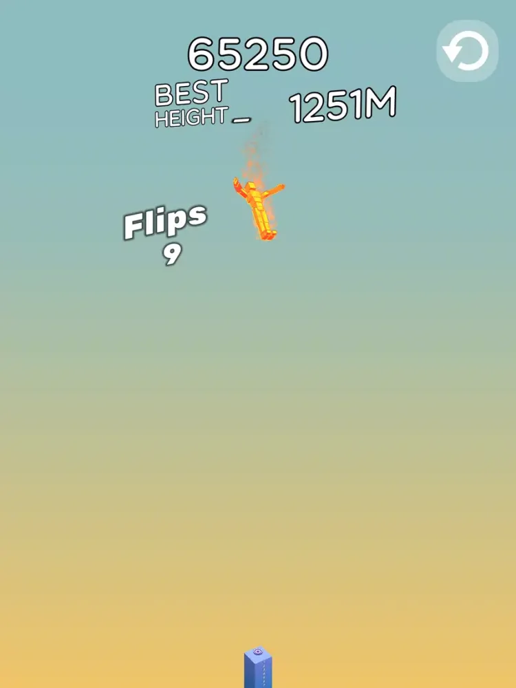 Hold to make stickman flip forward, release to land nicely on feet and be careful from crashing down! If everything is done well hit the stack and crash it to the bottom!