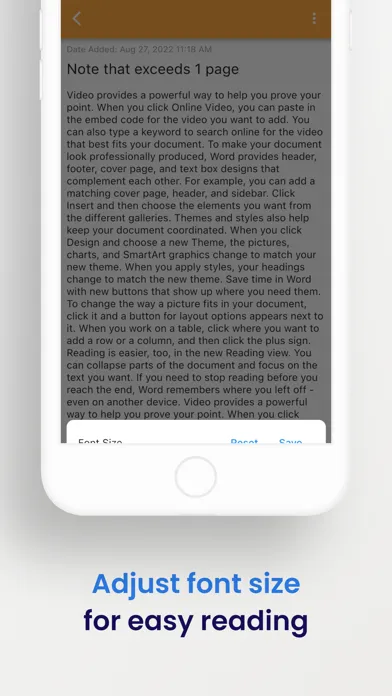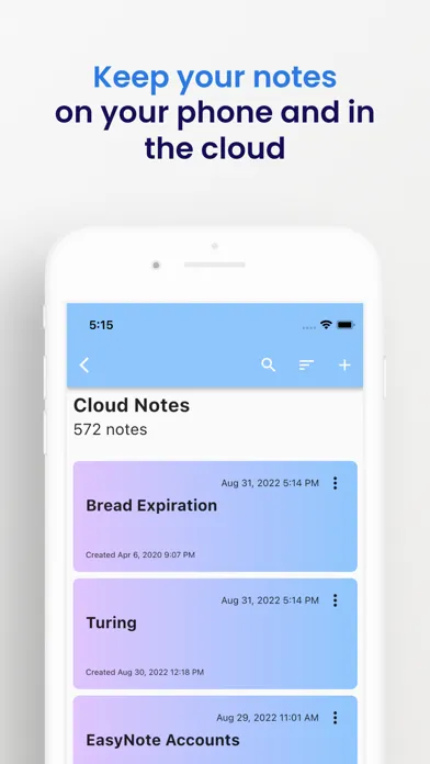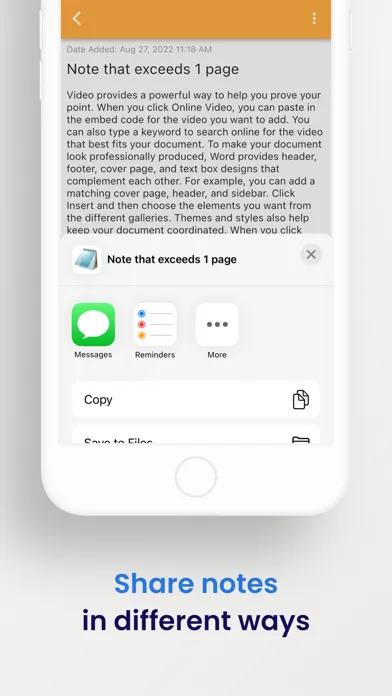 This is just your good old plain text notes - no fancy videos or pictures, just text. Store your notes locally on your phone or create an account to store notes on the cloud and access it from your other non-iOS devices. You can then copy notes between your local notes and your cloud notes.
