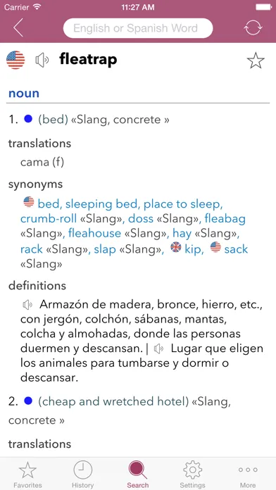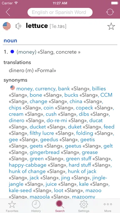 It has 21,000+ entries and translations, and phrases in English and Spanish combined; with the synonyms it gives you a combined 1 million entries which will enrich and extend your language scope while you enjoy learning!