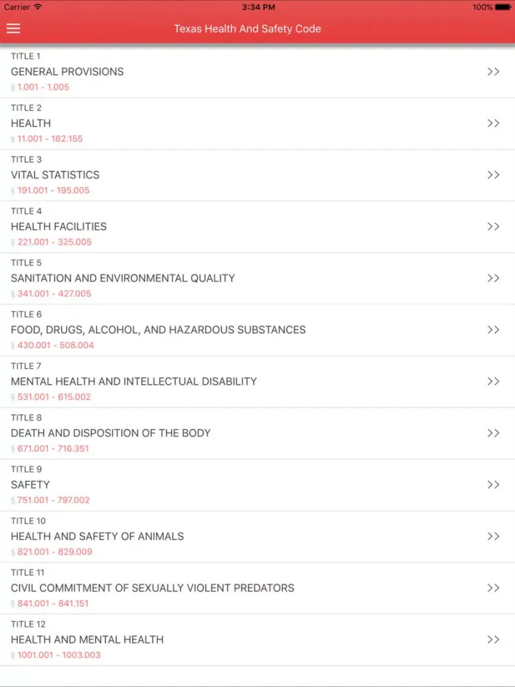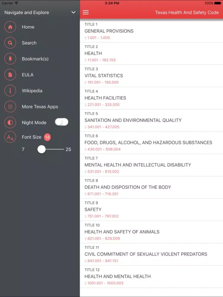Screenshot di Texas Health and Safety Code 2017 iPad