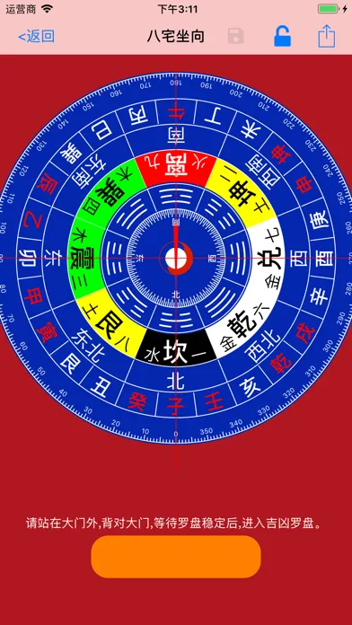 利用手机的定向指北针功能,自动旋转罗盘,支持三元罗盘,三合罗盘,金锁玉关,八宅风水,八宅风水使用相机功能,支持实景分析,辨别风水吉凶。