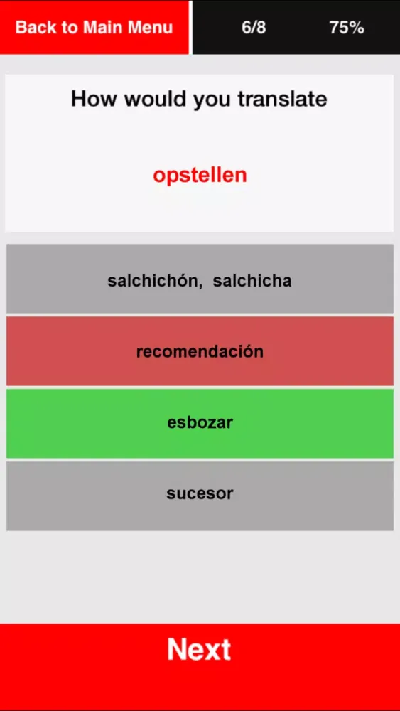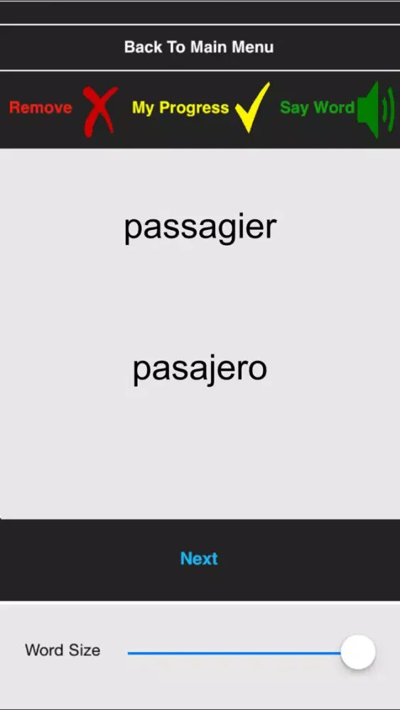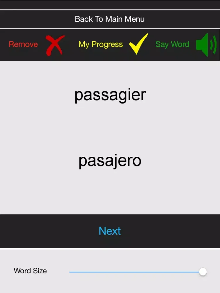 Tu tarea consiste en aprender cada una de las palabras. Solo deberías necesitar ver una palabra varias veces en el modo de aprendizaje de la aplicación hasta que tu cerebro la reconozca y, con algunas más, recordarás con seguridad su significado. La aplicación te mostrará cómo pronunciar cada palabra. Asimismo, podrás poner a prueba tu conocimiento para asegurarte de que vas bien encaminado en tu aprendizaje. Todo esto te ayudará a aprender muy rápido la cantidad de palabras suficiente para hablar bien un idioma.