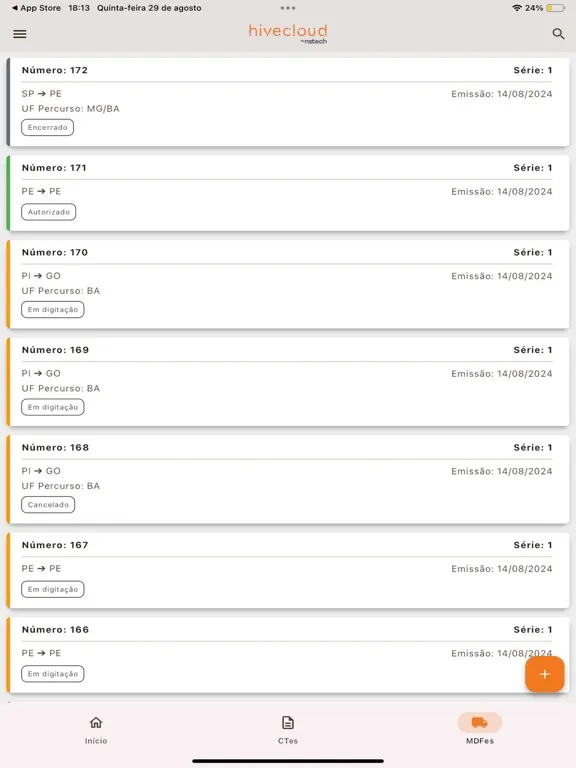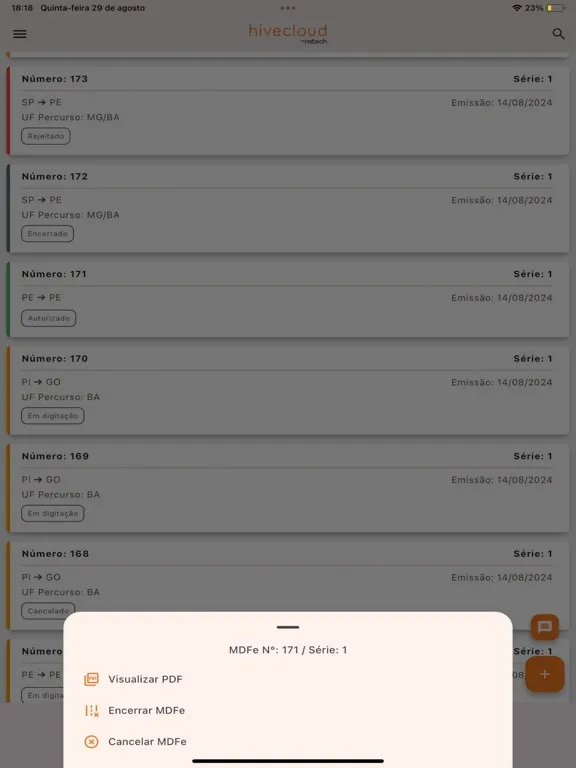 Screenshot di Hivecloud: CTe e MDFe iPad