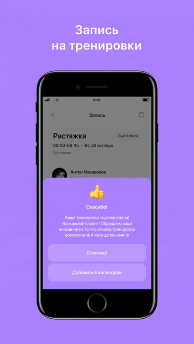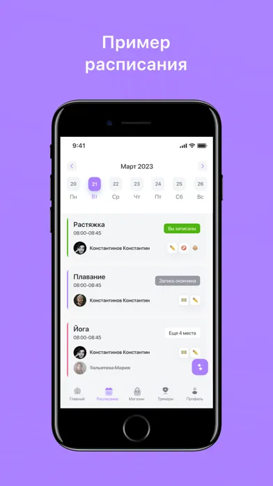 Посмотреть актуальное расписание и записаться на тренировку;