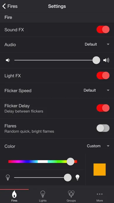 • Change fire audio: Default, Lava, Fireplace, Campfire