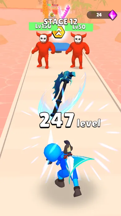 Get out of my way! Defeat all the enemies that blocks in your way! Every time you slash them, your levels will go up. However, not all enemies you encounter along the way can be defeated. Choose an opponent you can defeat by making smart choices based on your level. Keep it up and try to reach the highest level!