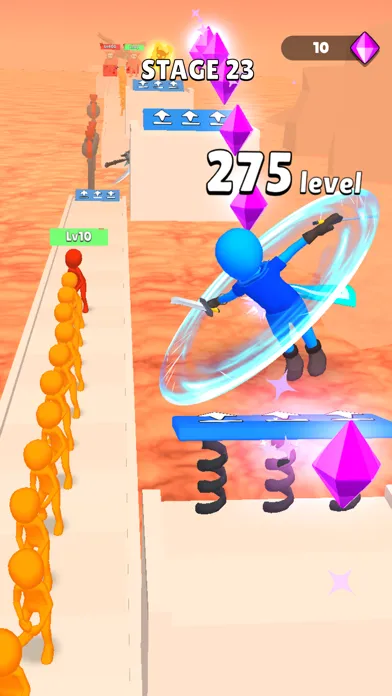 There are not only enemies on the track. Avoid traps and tricks along the way and choose a safe path. If you are lucky enough, you may encounter a portal that speeds up leveling or gives you gems. Explore various elements in the game through mysterious portals.