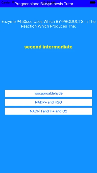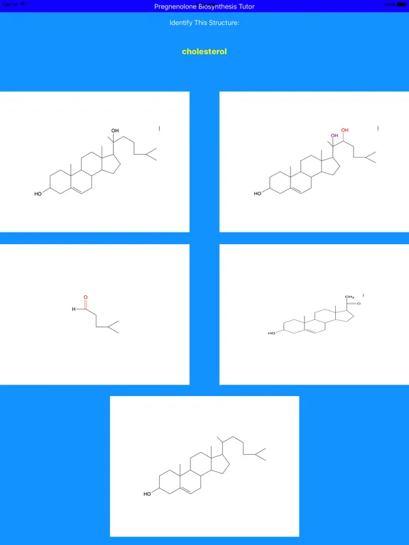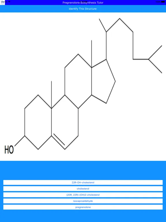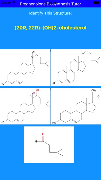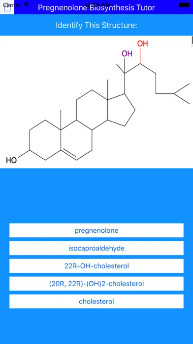 Pregnenolone Biosynthesis Tutor is an app designed to help you memorize the structures, coreactants, byproducts, enzyme and steroid chemical structure nomenclature. These chemical reactions describe the conversion of cholesterol to pregnenolone.