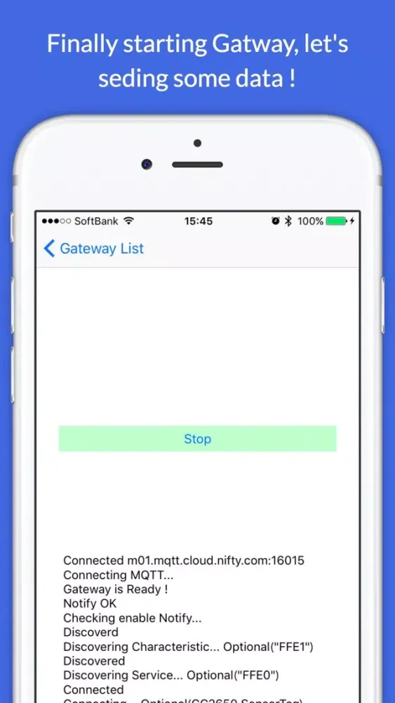 * Start "Gateway" with a registed characteristic of BLE and a channel you like.