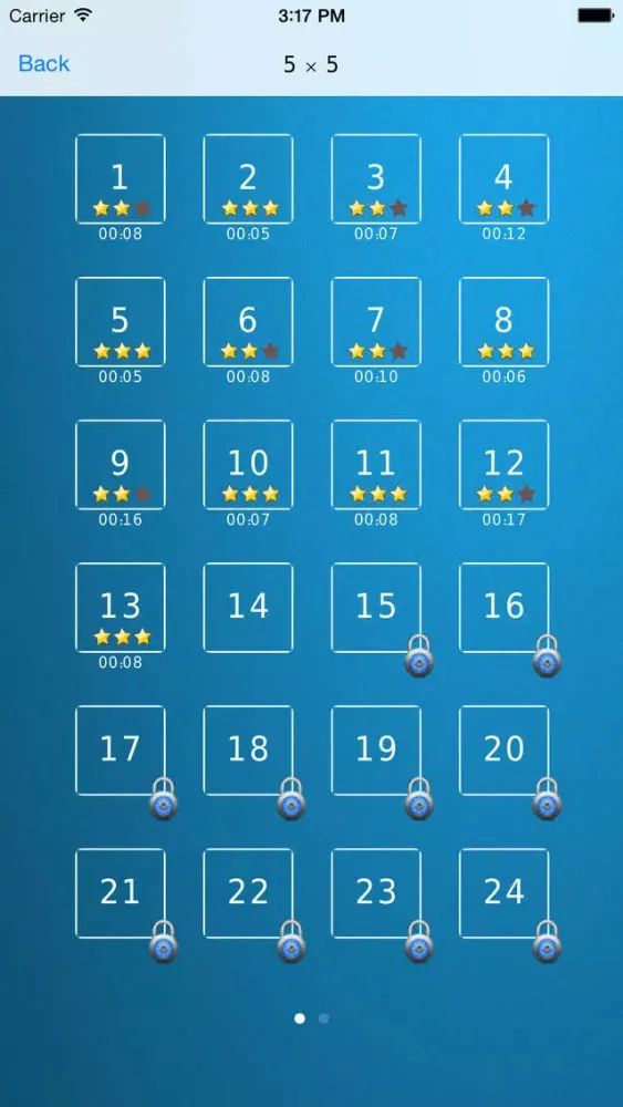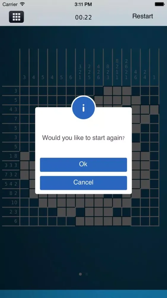 More than 100 puzzles in 3 levels (5 × 5, 10 × 10, 15 × 15)