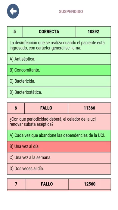 - Puedes realizar un test sólo con las preguntas que has fallado. Las preguntas en este listado se mantiene hasta que las aciertas o borras el listado manualmente.