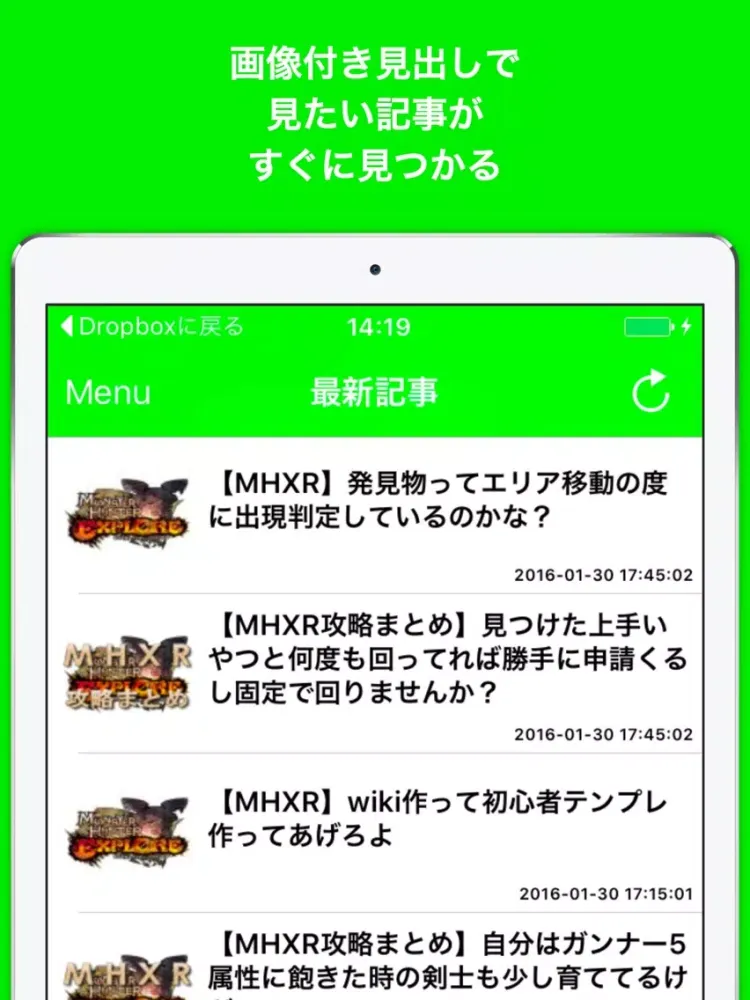 Screenshot di ブログまとめニュース速報 for モンスターハンターエクスプロア(MHXR) iPad