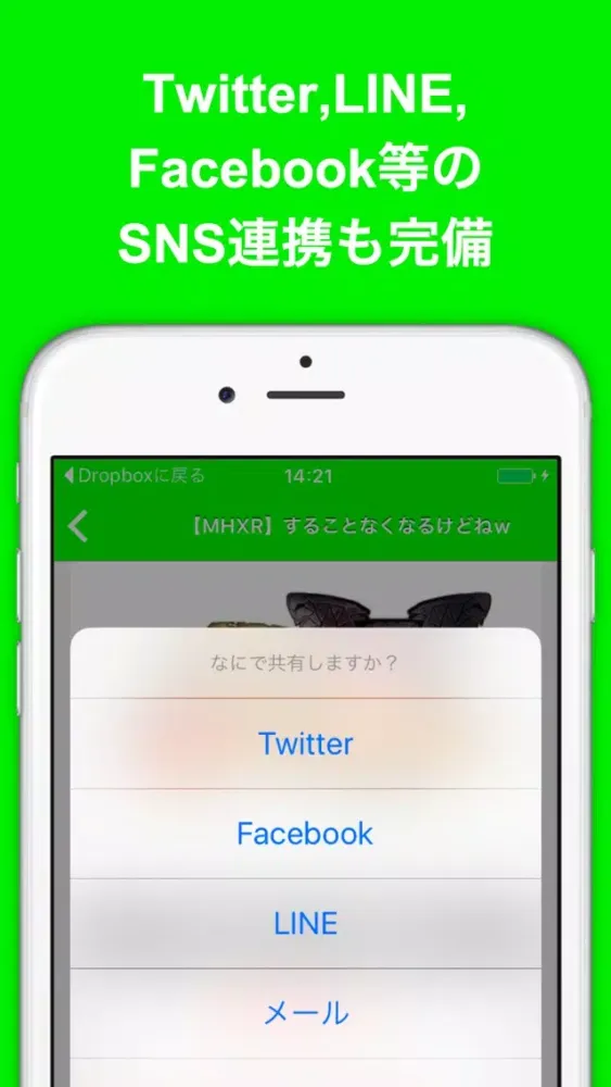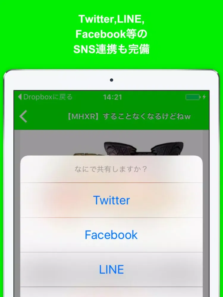 Twitter, Facebook, LINE等のソーシャル連携も万全!どんどんシェアしよう!