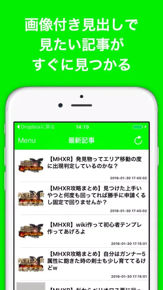 1タップの超簡単操作で最新のMHXRニュースがサクサク閲覧可能!
