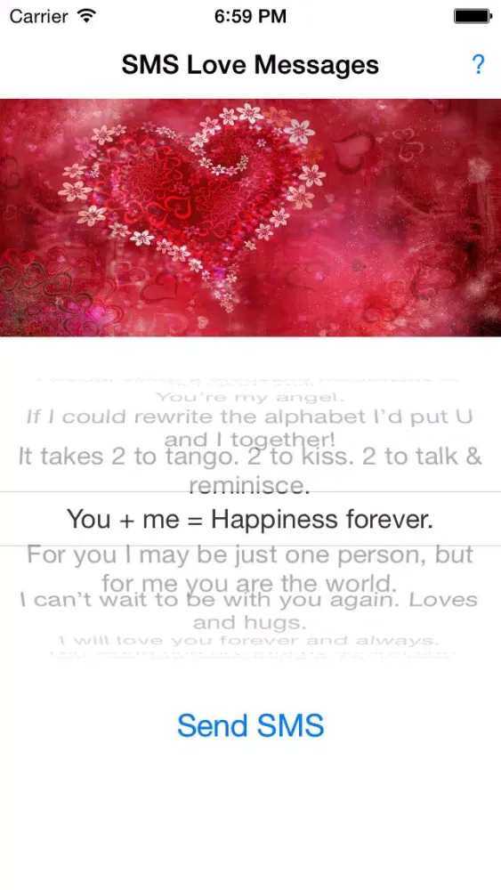 Do you want to send a love message to your partner, but don't know what to say? This app helps with that! Scroll through a variety of pre-written SMS Love Text Messages to send to your partner with a push of a button. The app is completely free and contains no ads, so why not give it a shot.