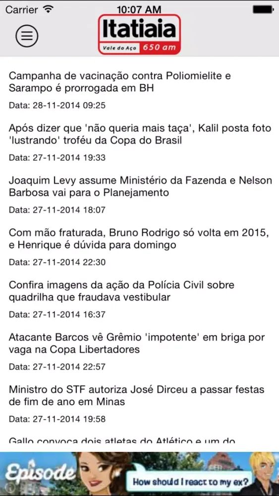 Come posso segnalare un problema con Rádio Itatiaia su PGYER IPA HUB?