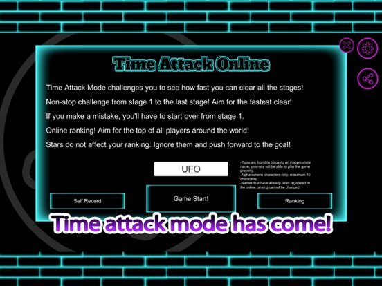 In this mode, you play non-stop from stage 1 to the next and try to clear all stages as fast as possible. If you make a mistake, you will have to start over from stage 1, so it is suitable for advanced players. The game also has an online ranking function. Compete with players from around the world for the best clear time!