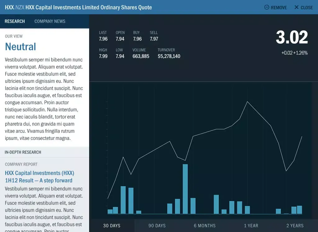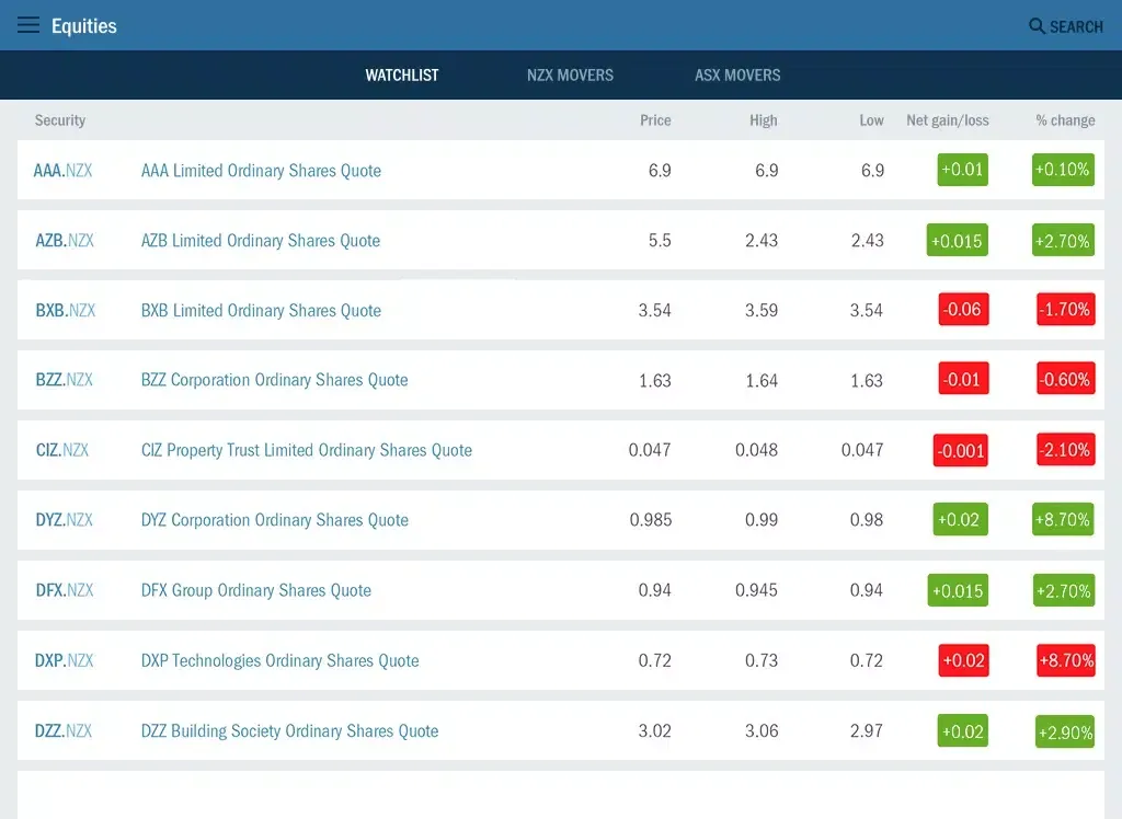 - Watchlist your favourite NZX and ASX securities, monitor price movements