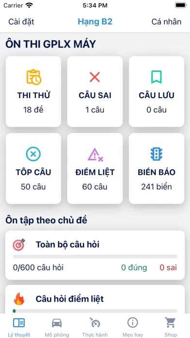 * Tính năng chính ôn thi Lý thuyết GPLX